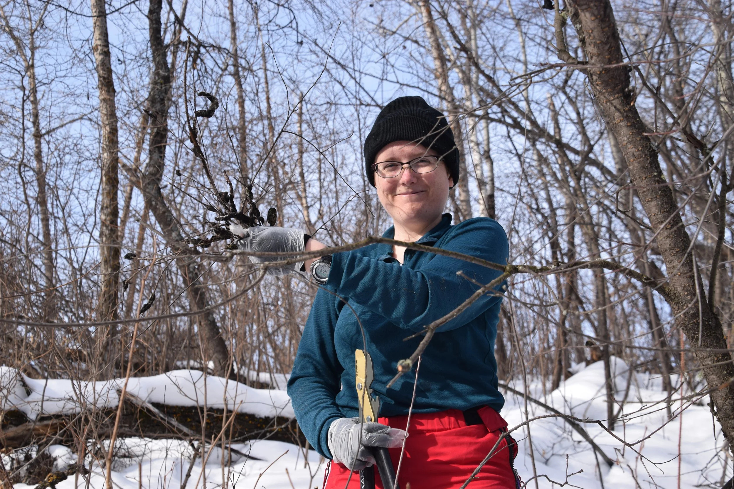 Conservation Team Lead Meghan Jacklin wearing an example of a middle layer.